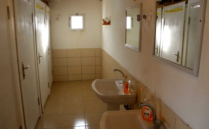 During bad weather or for guests with low budget there is a room ‘9’ with two beds and a stove. Toilets and showers are next door in the bath block.