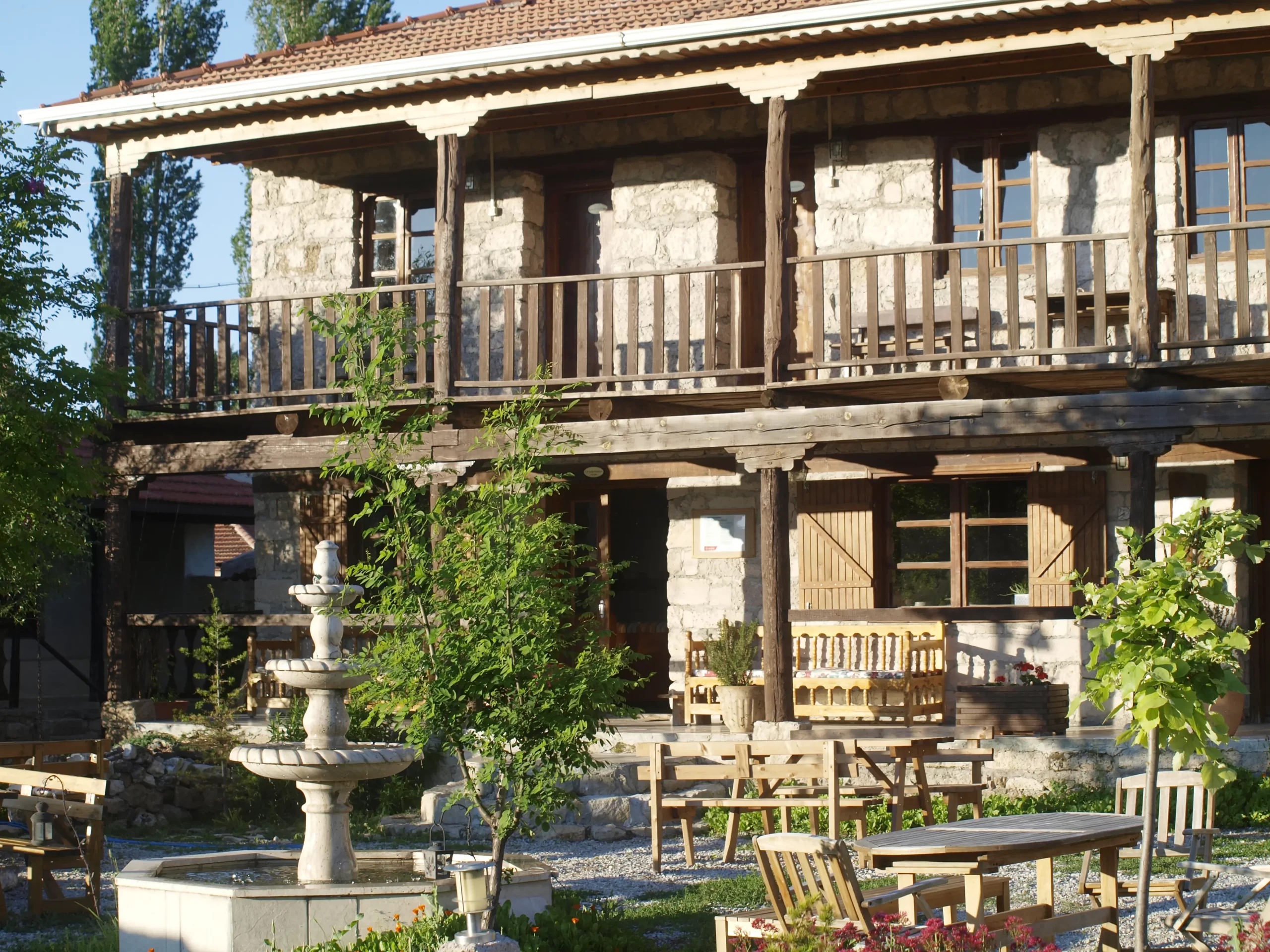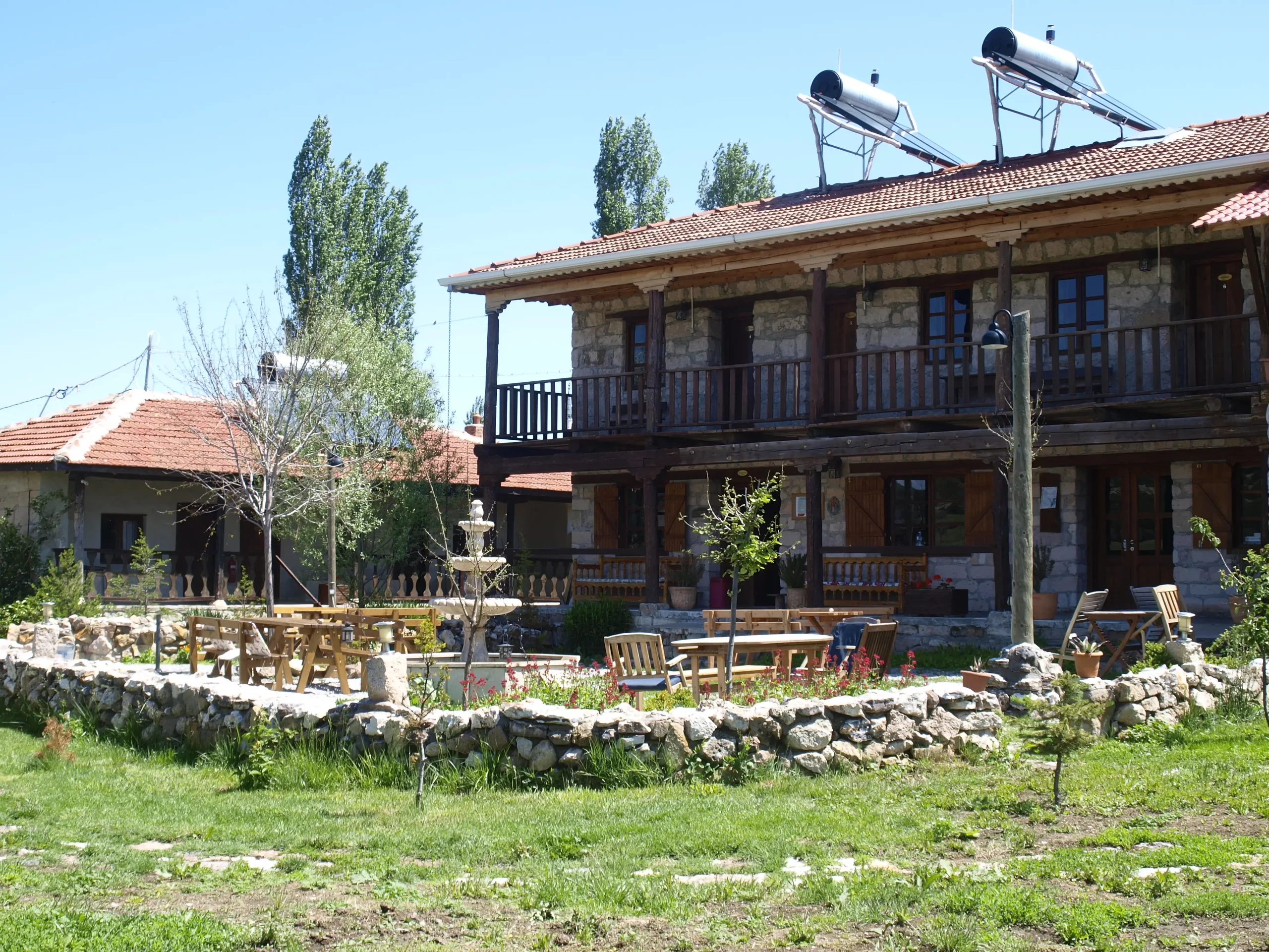 Main Building with its stunning nature view, 5 triple rooms designed with authentic architecture on the upper floor, a meeting room with a fireplace and a saloon on the lower floor, awaits its guests who do not compromise on comfort.